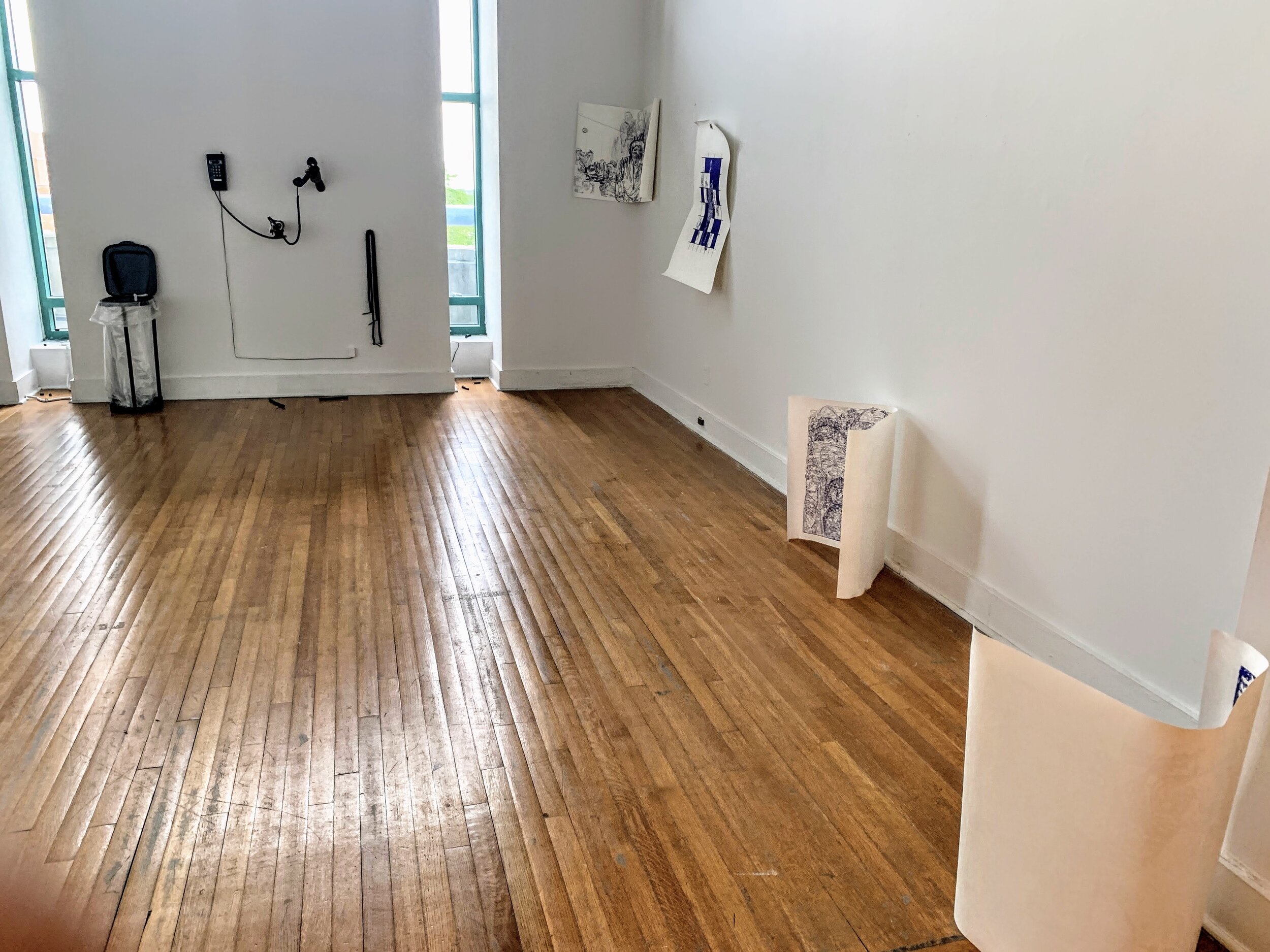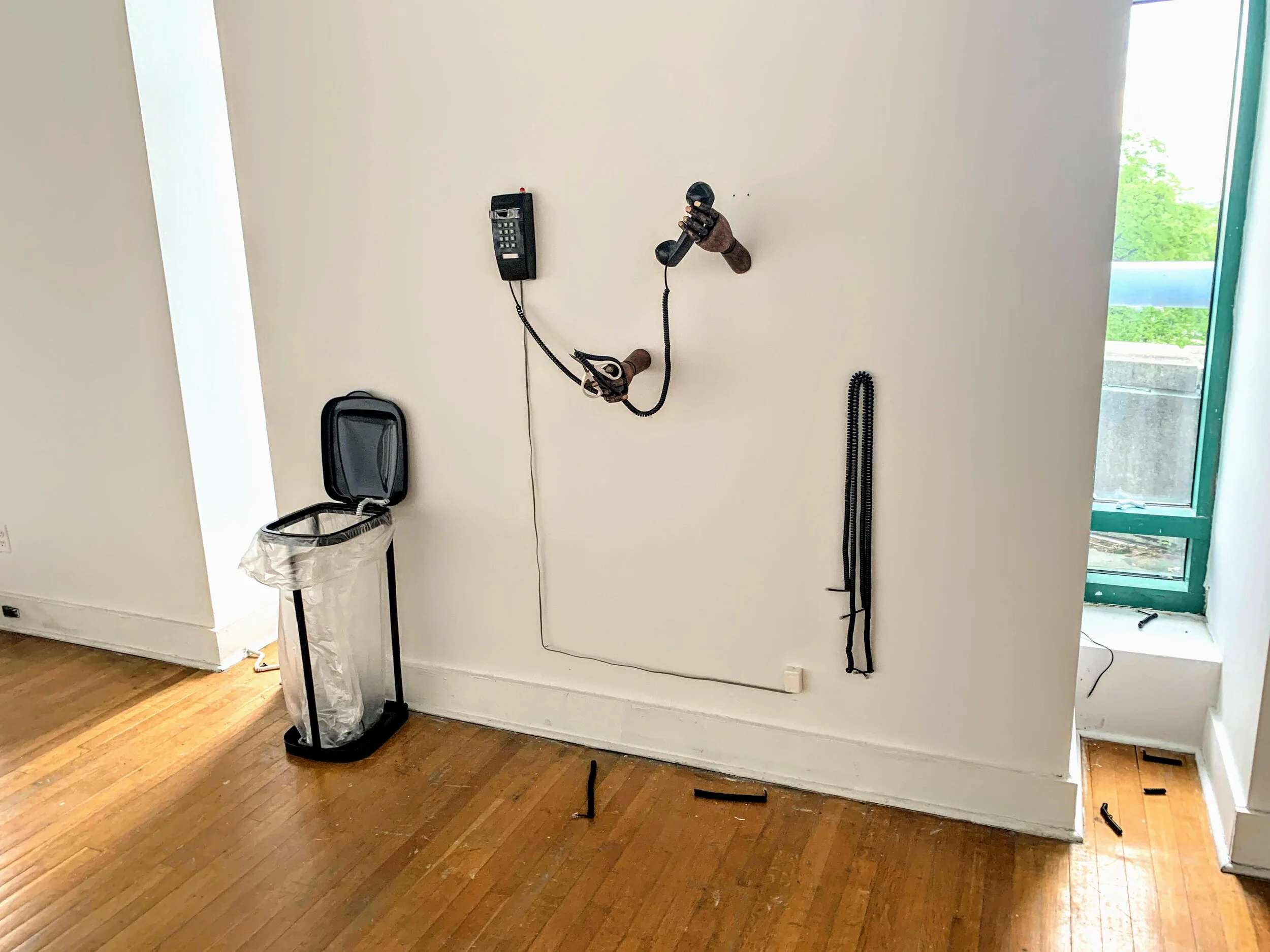 Additional Descriptions: selections 4 of 12, installed unconventionally: hanging from hooks, free-standing on the floor, folded into a corner