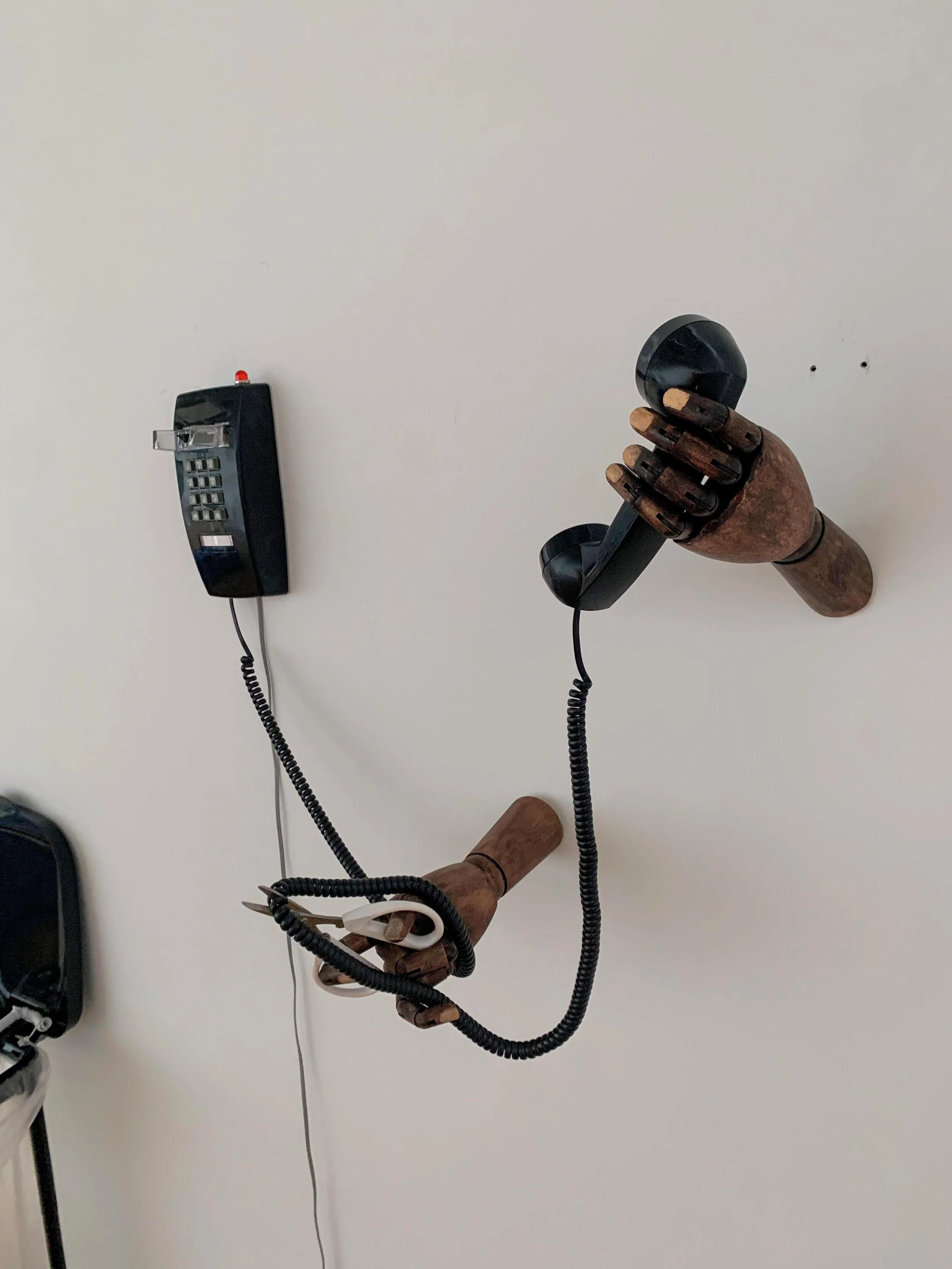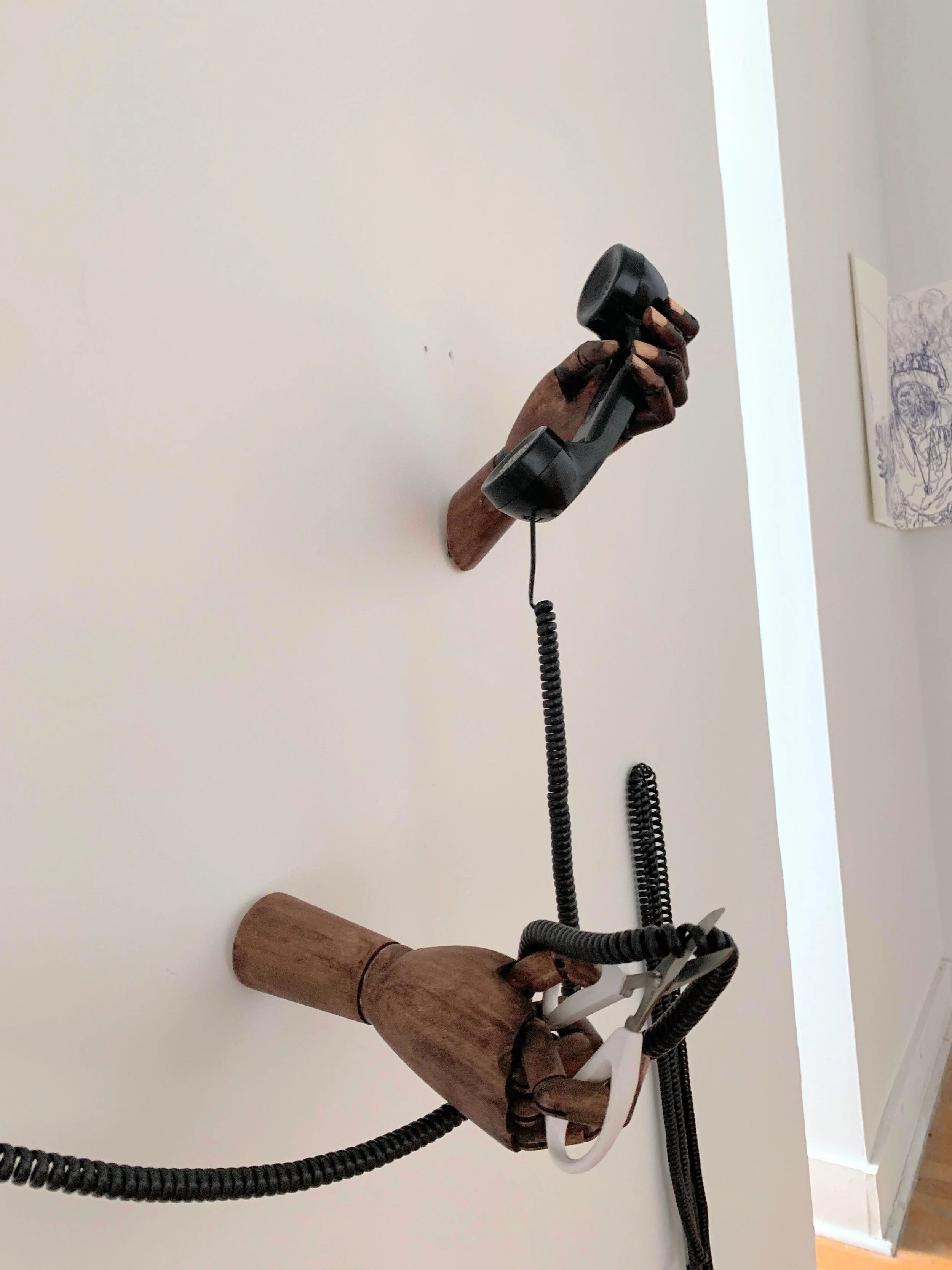 I aim to give a glimpse of the reality of psychiatric treatment as both the patient and the observer. This exploration of self references surrealism and uses object-relational theory to add layers of meaning and identity to the objects that surround me. “Li Dreams” references a bed, but has dead sunflower stalks growing from a transparent pillowcase filled with stained cotton. In “A Call for Help” one hand holds the phone to make a call while the other one poises scissors to cut the cord. Each work shows a piece of a treatment experience that literally overwhelms life as it was formerly known. The collection is a look at the effects of psychiatric norms on everyday life, grounded in an ungrounded sense of self.